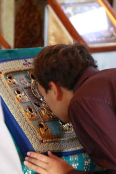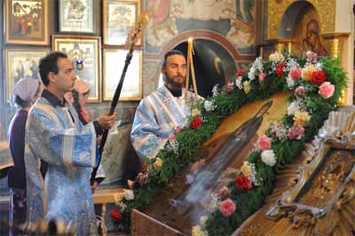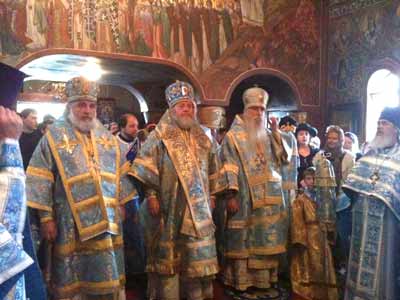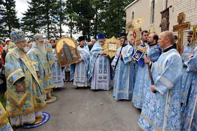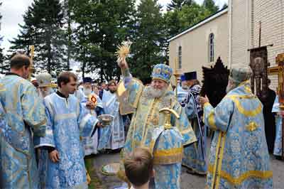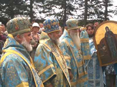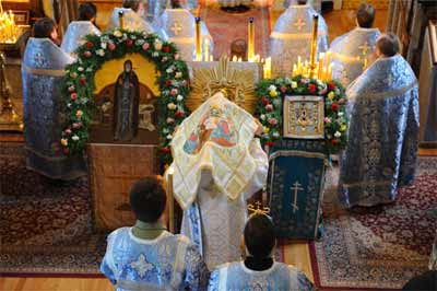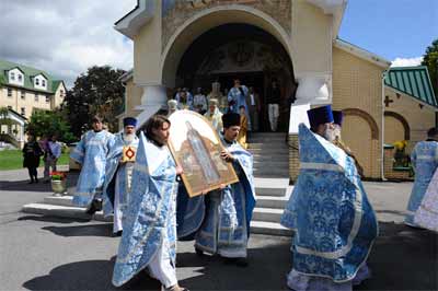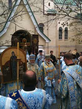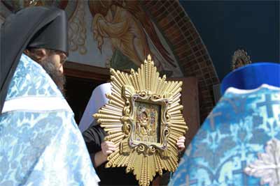 Денес, кога светата Црква го празнува споменот на свети маченици Агатоник, Зотик и др.со нив, и света мач. Евлалија и предвечерието на оддание на Успението на Мајката Божја во Светотроитскиот манастир во Џорданвил –Њујорк, се донесе чудотворната икона на Мајката Божја- Курскаја и копија од Печерската чудотворна иkона, каде истата беше високо воздигната од рацете на митрополитит Восточно-Американски, г. Иларион.